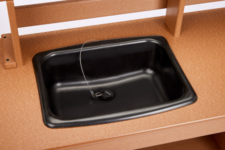 Ya sea que estén preparando un pastel de barro o sirviendo algo especial en su propio café de barro, a los niños les encantará la Cocina de Barro EverPlay™. Su amplio espacio en la superficie ofrece horas de diversión creativa y libre, mientras que el aparador ofrece amplio espacio de almacenamiento para utensilios, sartenes y más. El fregadero es el lugar perfecto para limpiar o para que la diversión continúe, mientras que el desagüe integrado facilita una limpieza rápida. Fabricados con jarras de leche recicladas, los productos EverPlay son resistentes, sostenibles y resistentes a astillas, grietas y putrefacción. Una sólida garantía de 15 años garantiza que los productos resistirán el paso del tiempo.