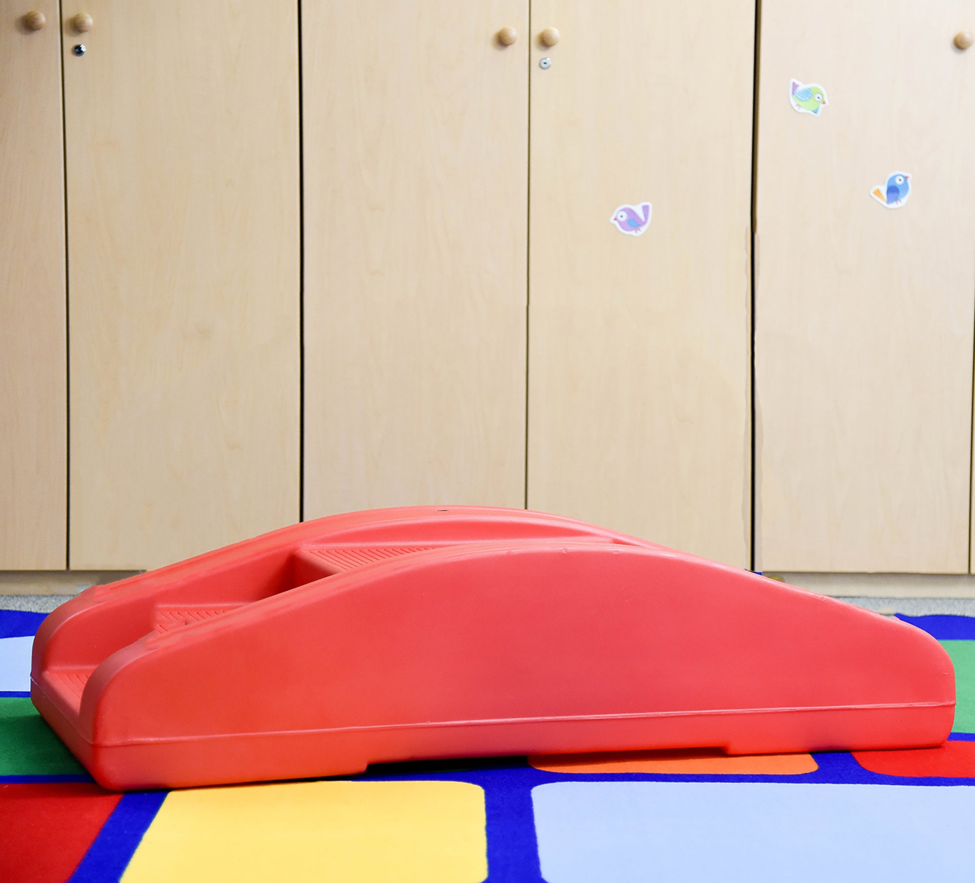 Esta robusta unidad de plástico moldeado ofrece dos actividades en una: un divertido balancín en un lado y un puente para niños en el otro. Su tamaño compacto la hace especialmente práctica para juegos activos tanto en interiores como en exteriores. Incluye barandillas de seguridad azules opcionales para ayudar a los niños a mantener el equilibrio al usar el puente. Para todas las edades.
