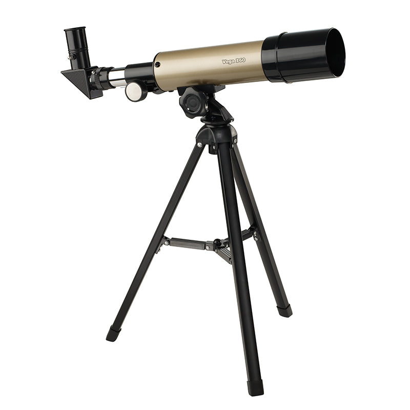 A partir de 3.er grado. Con este telescopio ligero y resistente, los jóvenes científicos pueden explorar las maravillas naturales de la Tierra, desde aves hasta animales, pasando por los cráteres lunares y más allá. El objetivo acromático de 50 mm, la óptica de cristal y el enfoque de piñón y cremallera ofrecen imágenes nítidas y cercanas con aumentos de 20x a 80x. Su diseño refractor fácil de usar y su trípode de sobremesa lo hacen perfecto para explorar en el jardín y para descubrir en cualquier lugar. Incluye dos oculares intercambiables y un formador de imágenes para observar objetos terrestres.