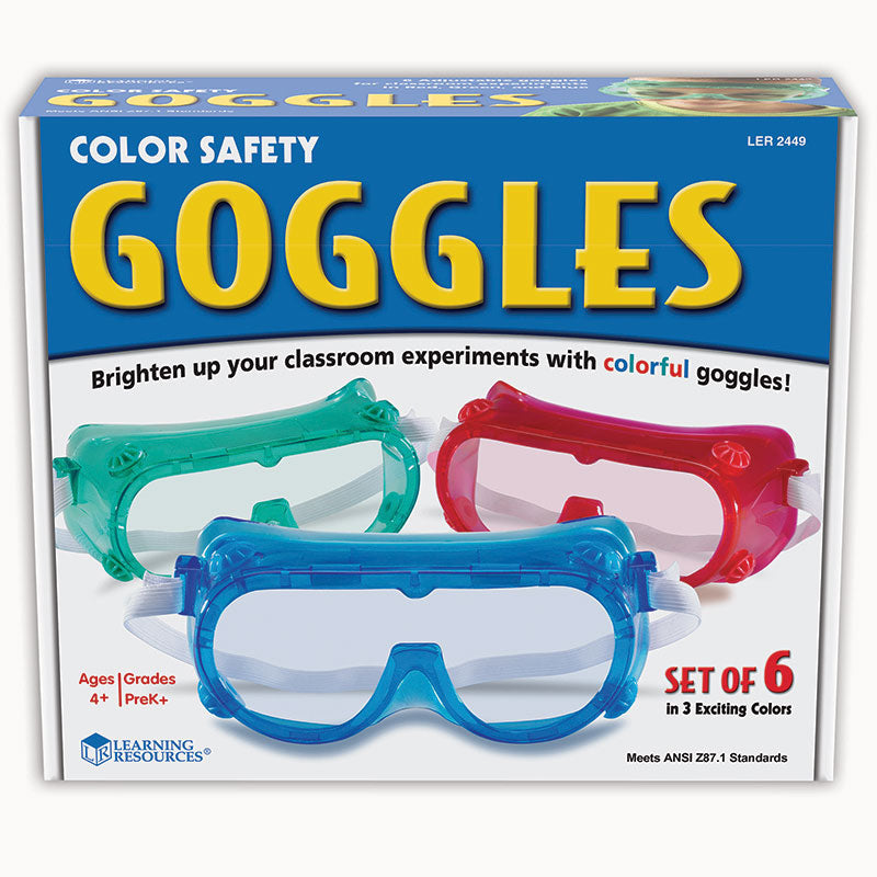 Estas divertidas gafas de seguridad de colores se pueden usar siempre que los estudiantes necesiten protección ocular confiable. Tienen el tamaño perfecto para sus estudiantes y son ajustables para adultos. El juego de seis gafas viene en tres colores brillantes y translúcidos (rojo, azul y verde) y cumple con las normas de seguridad ANSI Z87.1. A partir de kínder.