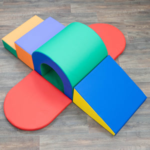El centro de juegos con tobogán Alpine Tunnel de Children's Factory es un conjunto de bloques gigantes blandos de gran tamaño para trepar por encima y por debajo.