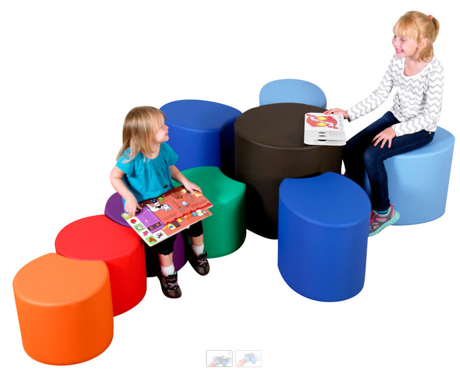 Transforma tu espacio con nuestros suaves y coloridos asientos Dragonfly. Permite que los niños lean y jueguen juntos mientras disfrutan de su propio asiento. Cada color representa una forma independiente que se puede reorganizar según sea necesario. Los asientos grandes miden 39 cm de largo x 45 cm de ancho x 40 cm de alto. La mesa central mide 56 cm de diámetro x 50 cm de alto. Los asientos pequeños miden 37 cm de largo x 30 cm de ancho x 30 cm de alto. Las robustas formas de espuma están recubiertas de poliuretano ecológico, libre de PVC y fácil de limpiar y desinfectar.