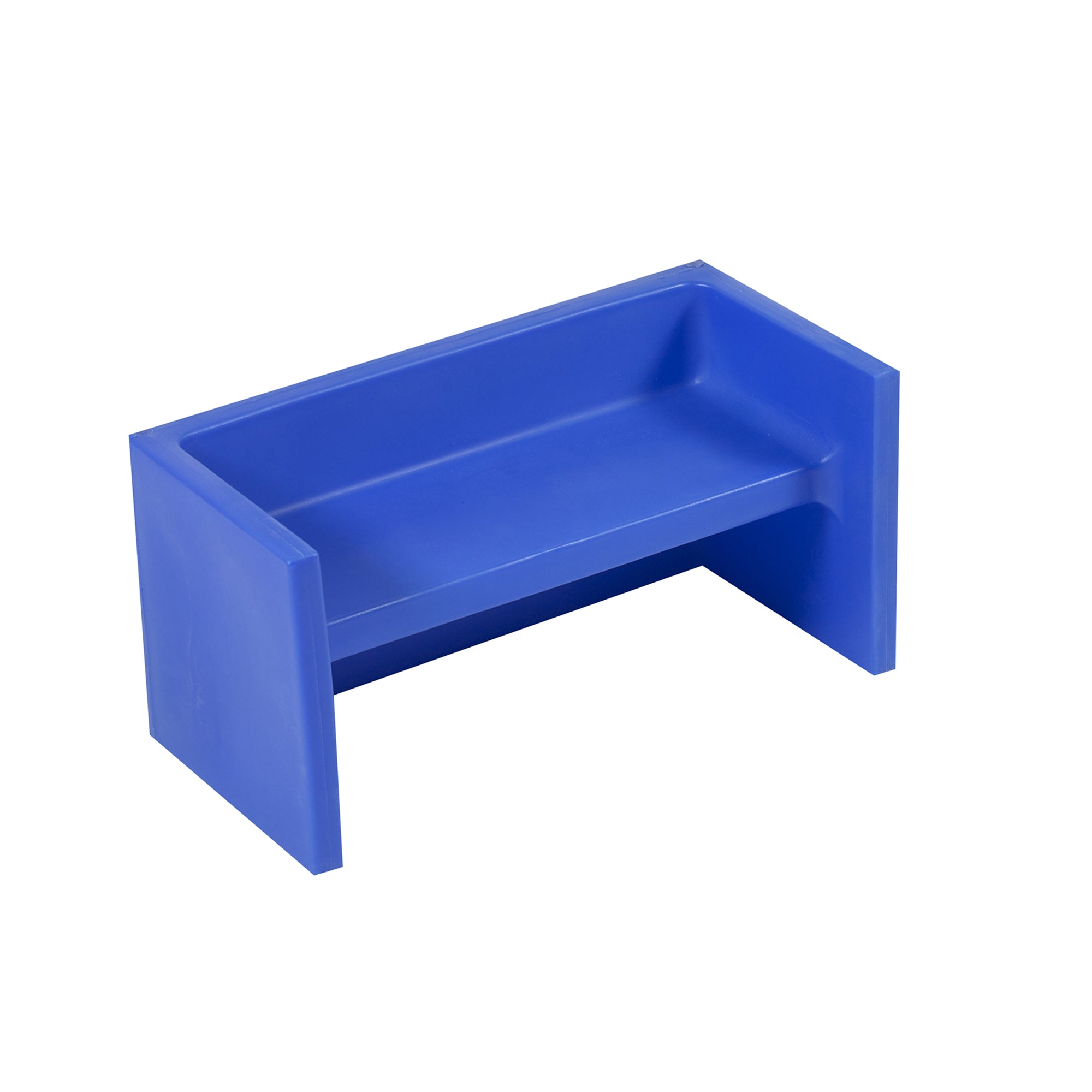 Utilice nuestro Adapta-Bench™ de polietileno moldeado para interiores y exteriores como mesa de juego rectangular, sofá de dos plazas con asientos reversibles de 18 cm y 23 cm, o como banco de 38 cm de alto para adultos. Los brazos del banco tienen un radio de seguridad. 38 cm de lado x 76 cm de largo.