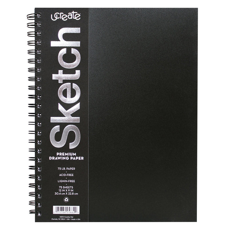 Cuaderno de bocetos premium con cubierta y contraportada de poliéster negro resistente. Cada cuaderno contiene 75 hojas de papel de dibujo de gramaje alto y libre de ácido. La encuadernación en espiral se mantiene plana para dibujar y bocetar cómodamente. Ideal para bocetar y dibujar con técnicas secas. Las hojas están perforadas para el arte final. Libre de ácido.