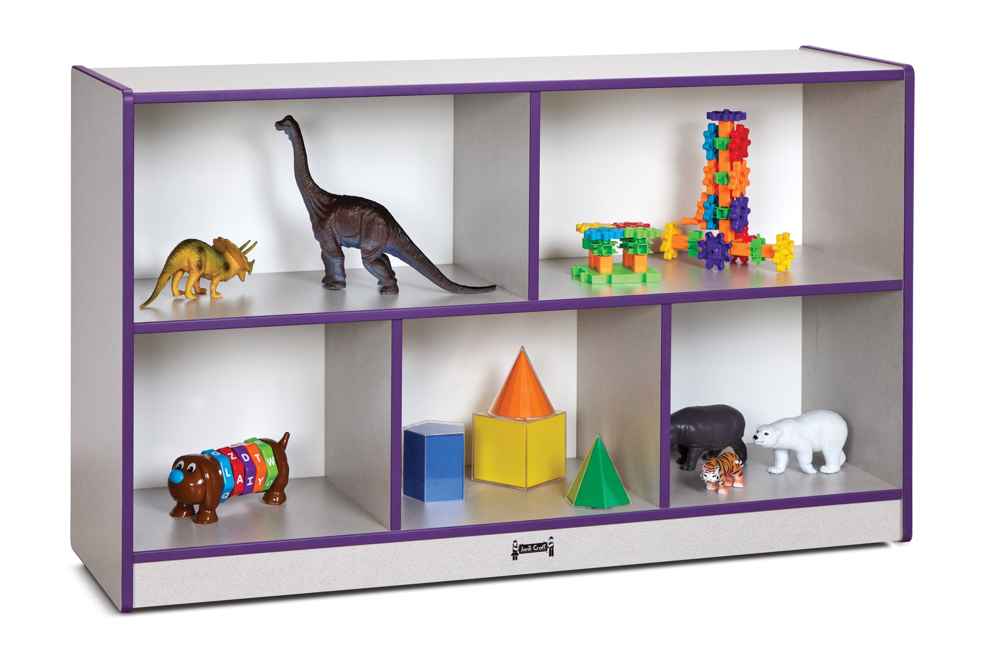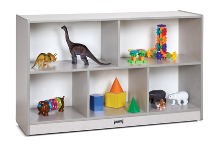 Just the right storage height for all ages! Books, toys, games, and more fit perfectly in these storage units. Constructed of double-sided freckled gray laminate with colored TRUEdge. 48 in. wide x 15 in. deep x 29 in. high.