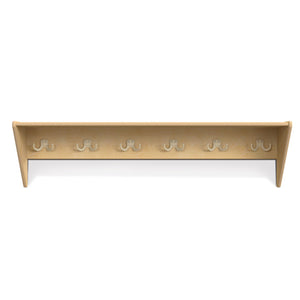 Six double coat hooks with a sturdy Birch plywood shelf above is perfect for any entry way. The double coat hooks hang multiple coats and bookbags and the shelf is great for storing lunchboxes or is the place to set down personal items while hanging jackets.
