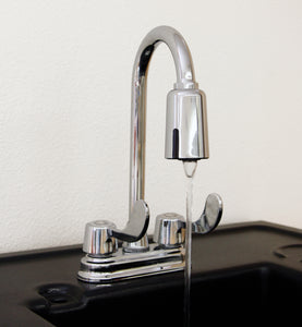 Make your Clean Hands Helper Portable Sink touch-free! This handy faucet adapter easily attaches to your Clean Hands Helper Portable Sink faucet making it easy for kids to wash hands without touching handles. Adapter features two touch-free options. The first option allows the water to turn on and off whenever it senses hands below the faucet. The second option allows the water to run for 3 minutes or until you turn it off. Simply swipe a hand next to the sensor on the side of the adapter to turn the water on, and to turn it off before 3 minutes, swipe again. The adapter includes a six-foot Micro USB to USB-A cord and wall plug for charging. Faucet is not included. CE and RoHS compliant.
