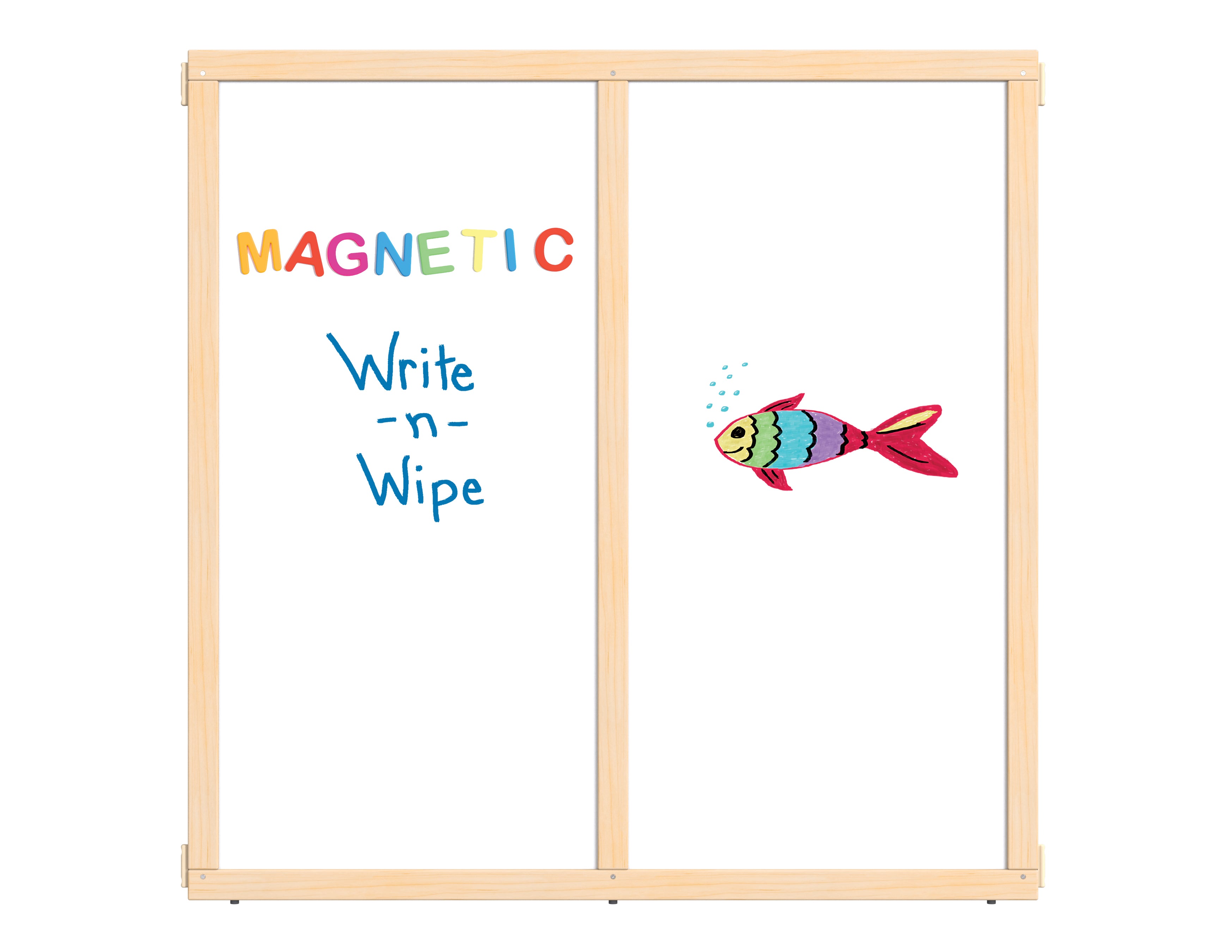 Magnetic Write-n-Wipe Panels help create or define a space and will convert any unit into a language enrichment center. Magnetic Write-n-Wipe surface provides tactile learning and helps improve fine motor skills. One-side Magnetic Write-n-Wipe, other side finished hardboard. Connect to S-Height Hubs (48.5" high).