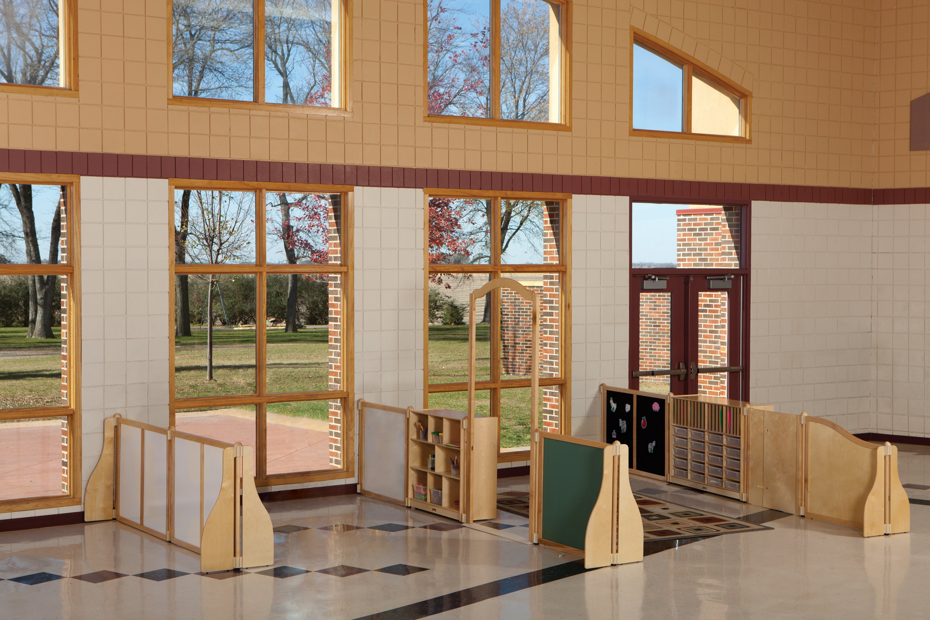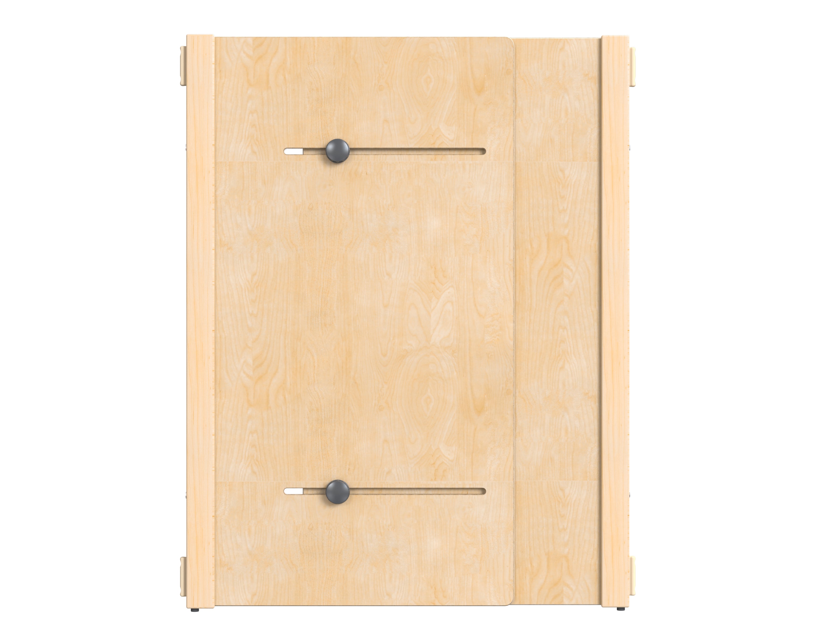 Use KYDZSuite™ Accordion Panel to span unique spaces not covered by traditional sized KYDZSuite™ Panels. Panels expand from 24" all the way to 36". Knob placed on outside to prevent children from reaching. No tools needed for adjustments. Dual-sided KYDZTuff® finished plywood surface. 24" to 36" wide. Available in 24", 29" and 35" heights.