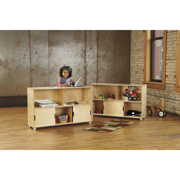 Multi-functional storage is robust enough for heavy books. Bottom storage area helps reduce clutter and allows items to be hidden behind two sliding doors. Choose from units with three, or four shelves as well (1724JC and 1725JC). Each unit has adjustable shelves to fit your needs. 36"High 58lbs.