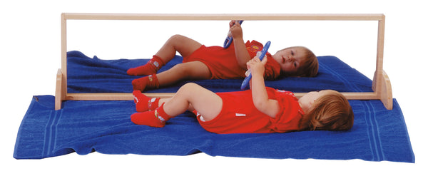 Mirror is chrome plated steel. Legs remove for vertical or horizontal use. Minimal assembly. 13 in. wide x 48 in. high.