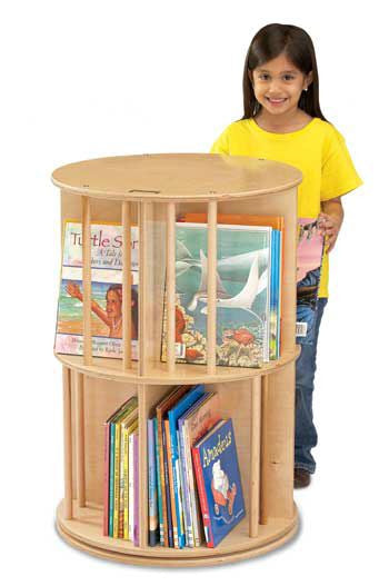 Set up a compact library in your classroom. Preschoolers can easily browse the eight sectioned revolving library for their favorite titles. 22" diameter x 32" high.