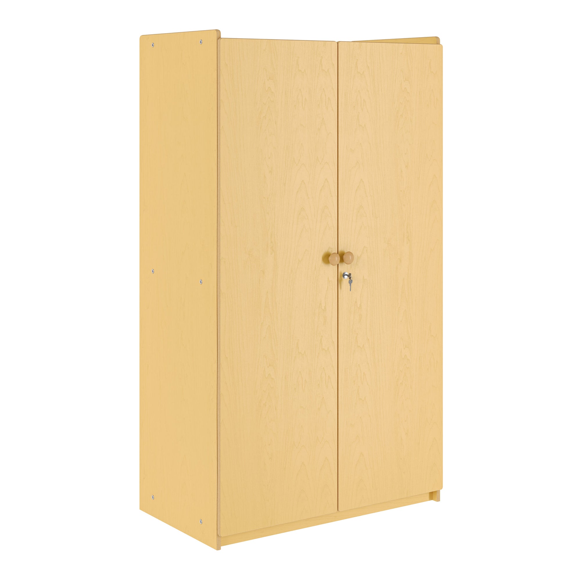 Value Line™ Birch Teacher’s Storage Cabinet features 1 fixed and 2 adjustable shelves that are adjustable in 5” increments and easy-pull doorknobs. Unit includes a lock and 2 keys. The compact size allows for storage on top of the cabinet. This unit is constructed from durable, 5/8” thick maple-faced melamine panels, rounded corners and recessed 1/4” thick woodgrain back panels. 36"L x 19"W x 63"H