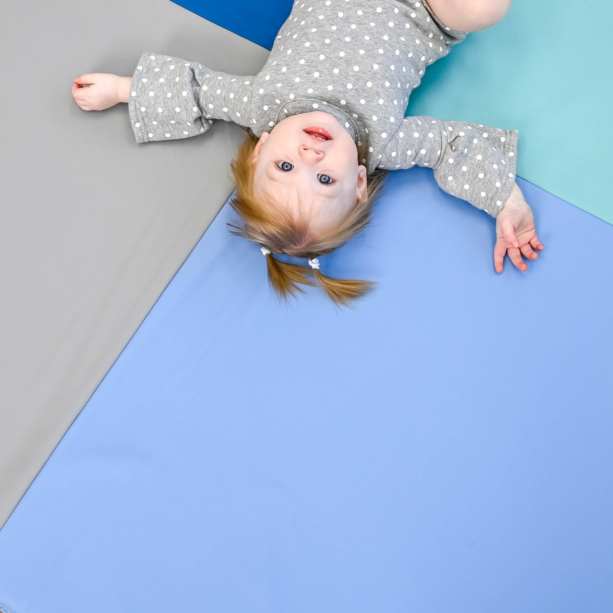 The Children’s Factory Four Square Mat is a 1-inch thick, reversible mat designed for comfort and versatility. One side features four vibrant colors, while the other is solid, making it perfect for playrooms and classrooms. Made from water-resistant polyurethane vegan leather, it’s easy to clean. Measures 60” x 60” x 1” with a 2-year warranty.