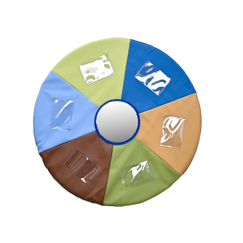 Ignite your baby’s curiosity with the See-Me Picture Mat! Designed to captivate and engage, this mat features 6 vibrant colored panels, each with a clear pocket for inserting pictures of loved ones or cherished objects. The center boasts a flexible mirror, enticing little ones to explore their own reflections. With its stimulating colors and versatile play surface, this mat encourages cognitive development and gross motor play. Covered in easy-to-clean vegan leather, it’s a perfect companion for early learning adventures!