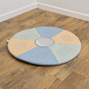 Ignite your baby’s curiosity with the See-Me Picture Mat! Designed to captivate and engage, this mat features 6 vibrant colored panels, each with a clear pocket for inserting pictures of loved ones or cherished objects. The center boasts a flexible mirror, enticing little ones to explore their own reflections. With its stimulating colors and versatile play surface, this mat encourages cognitive development and gross motor play. Covered in easy-to-clean vegan leather, it’s a perfect companion for early learning adventures!