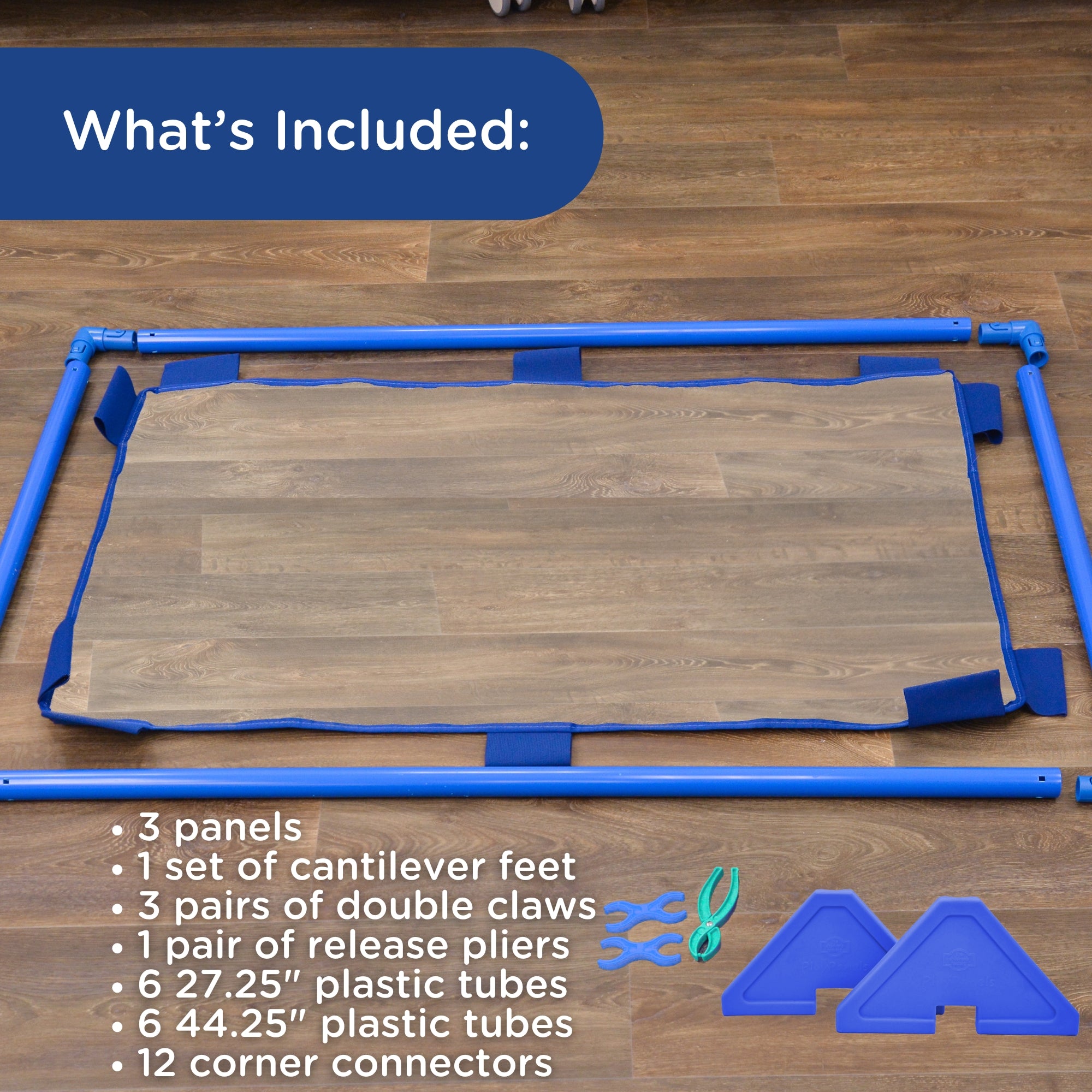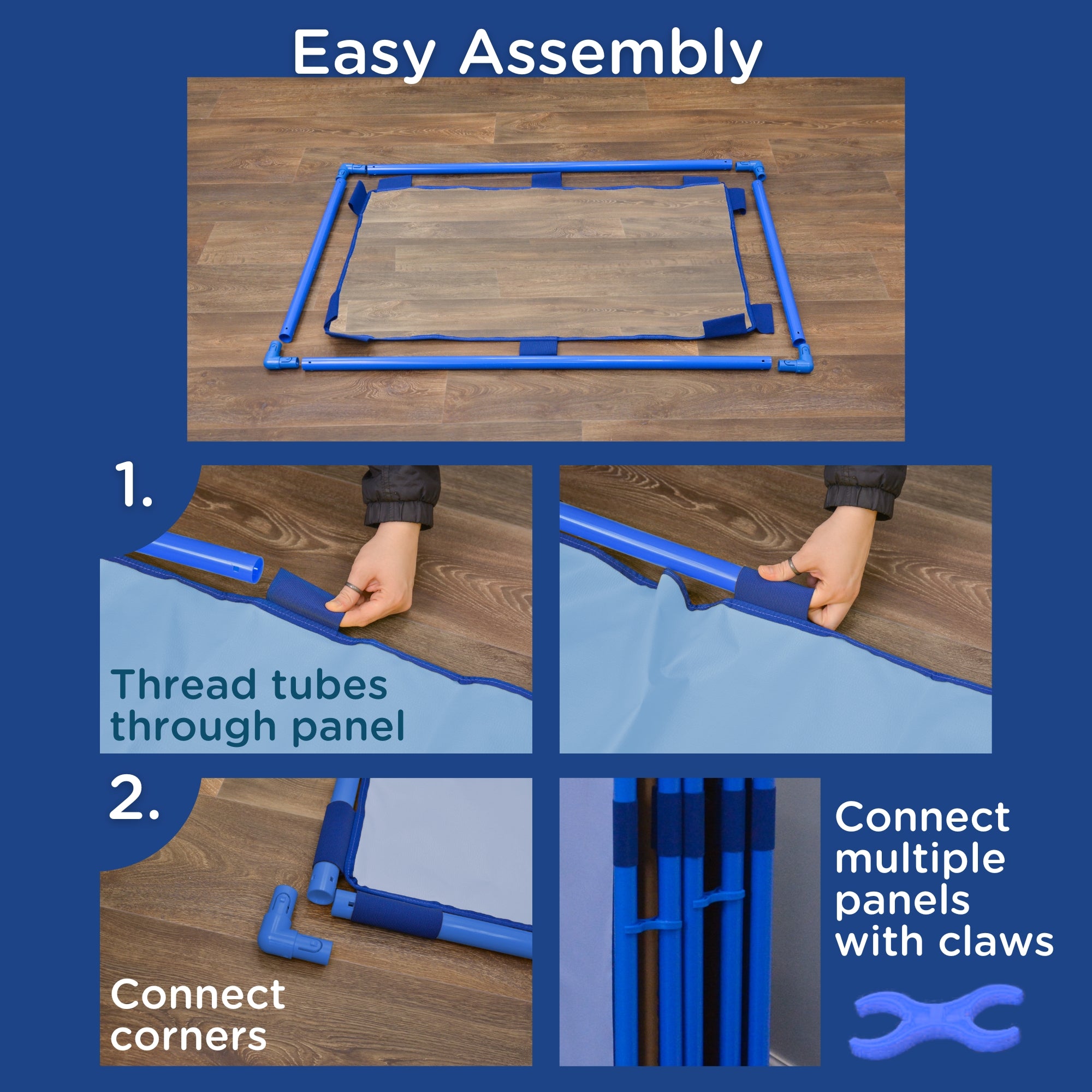 Customize your kids' learning space with the PlayPanel Room Dividers. Room dividing panels serve a variety of purposes such as separating activities or creating different work stations in your classroom. Using dividers encourages children to focus on the lesson or activity at hand without distractions. Each panel easily attaches to another with double claw clips. One set of double claw clips included. The easy to clean vinyl surface is stretched over durable, plastic, pipe frame. Weighted, cantilever legs connect to our PlayPanels to make them free-standing, stable room partitions. One pair of PlayPanel legs included.