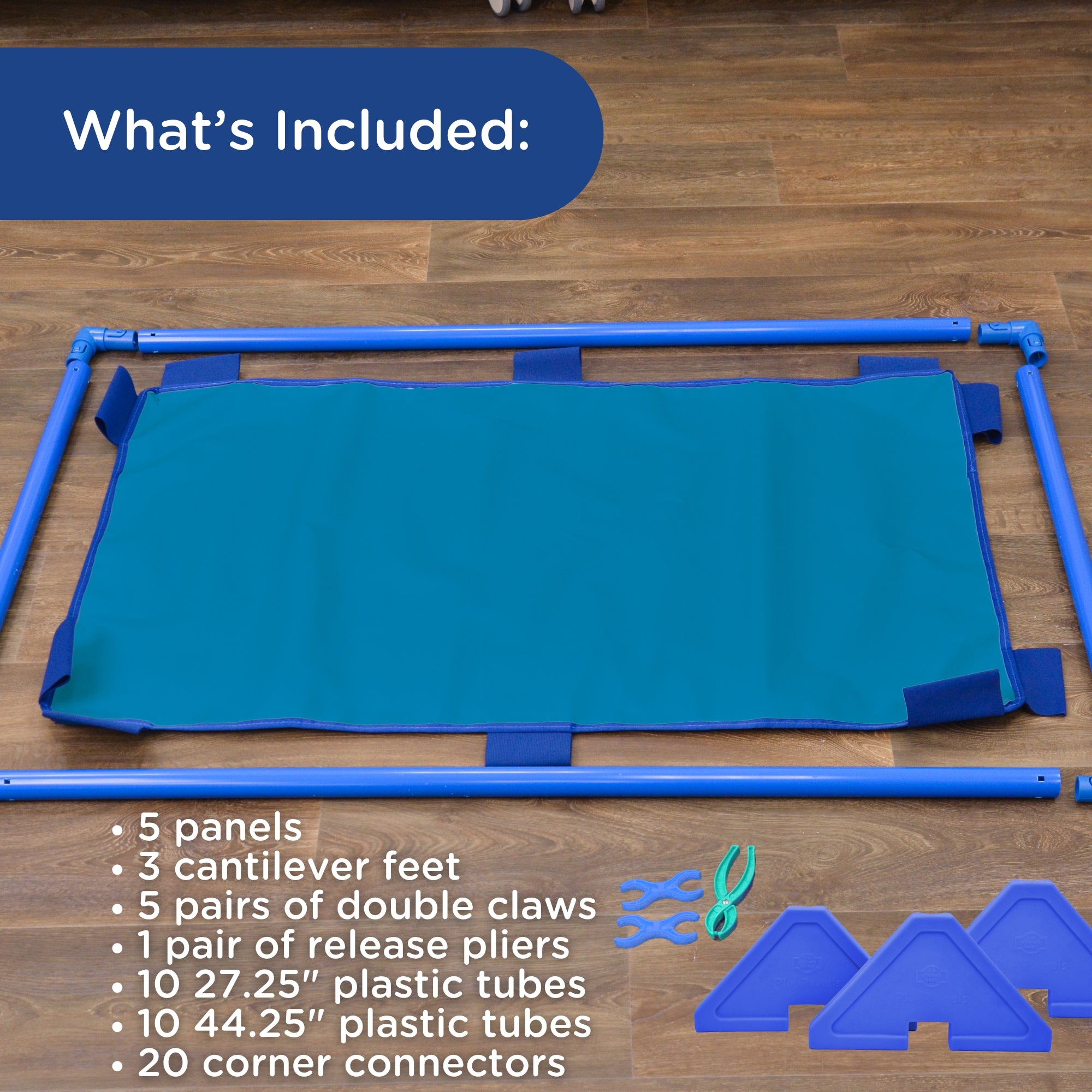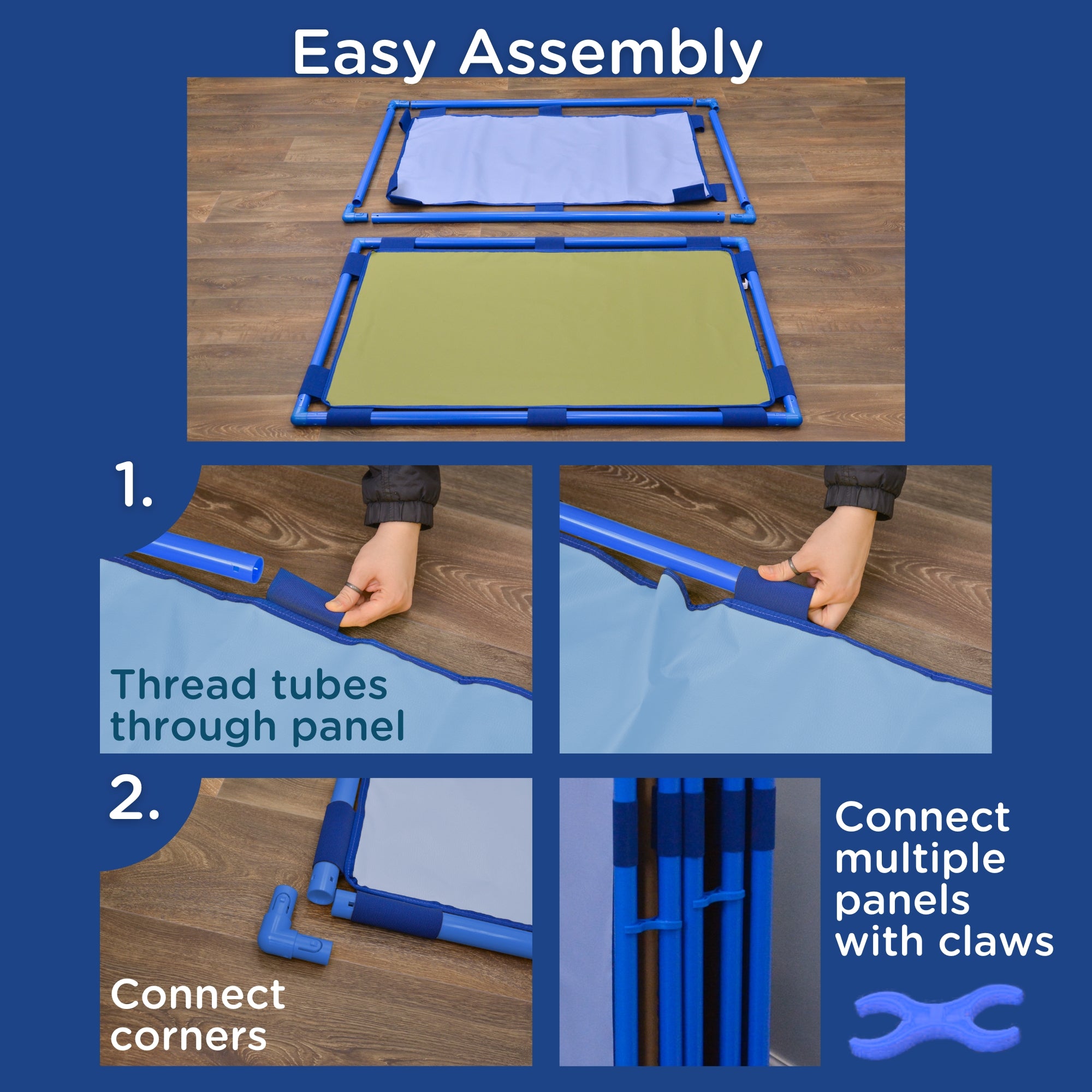 Customize your kids' learning space with the PlayPanel Room Dividers. Room dividing panels serve a variety of purposes such as separating activities or creating different work stations in your classroom. Using dividers encourages children to focus on the lesson or activity at hand without distractions. Each panel easily attaches to another with double claw clips. One set of double claw clips included. The easy to clean vinyl surface is stretched over durable, plastic, pipe frame. Be sure to order one pair of PlayPanel legs (sold separately - SKU CF9-93) for every 3 panels.