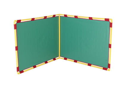 Colorful 90 degree angled room divider serves a variety of purposes such as creating a quiet space for rest time or separating activities. Using dividers encourages children to focus on the lesson or activity at hand without distractions. Each panel 48” x 60”
