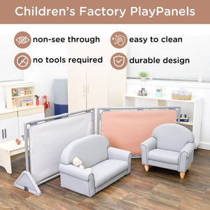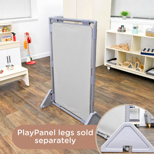 Customize your kids' learning space with the PlayPanel Room Dividers. Room dividing panels serve a variety of purposes such as separating activities or creating different work stations in your classroom. Using dividers encourages children to focus on the lesson or activity at hand without distractions. Each panel easily attaches to another with double claw clips. One set of double claw clips included. The easy to clean vinyl surface is stretched over durable, plastic, pipe frame. Be sure to order one pair of PlayPanel legs (sold separately -product# 60587) for every 3 panels.