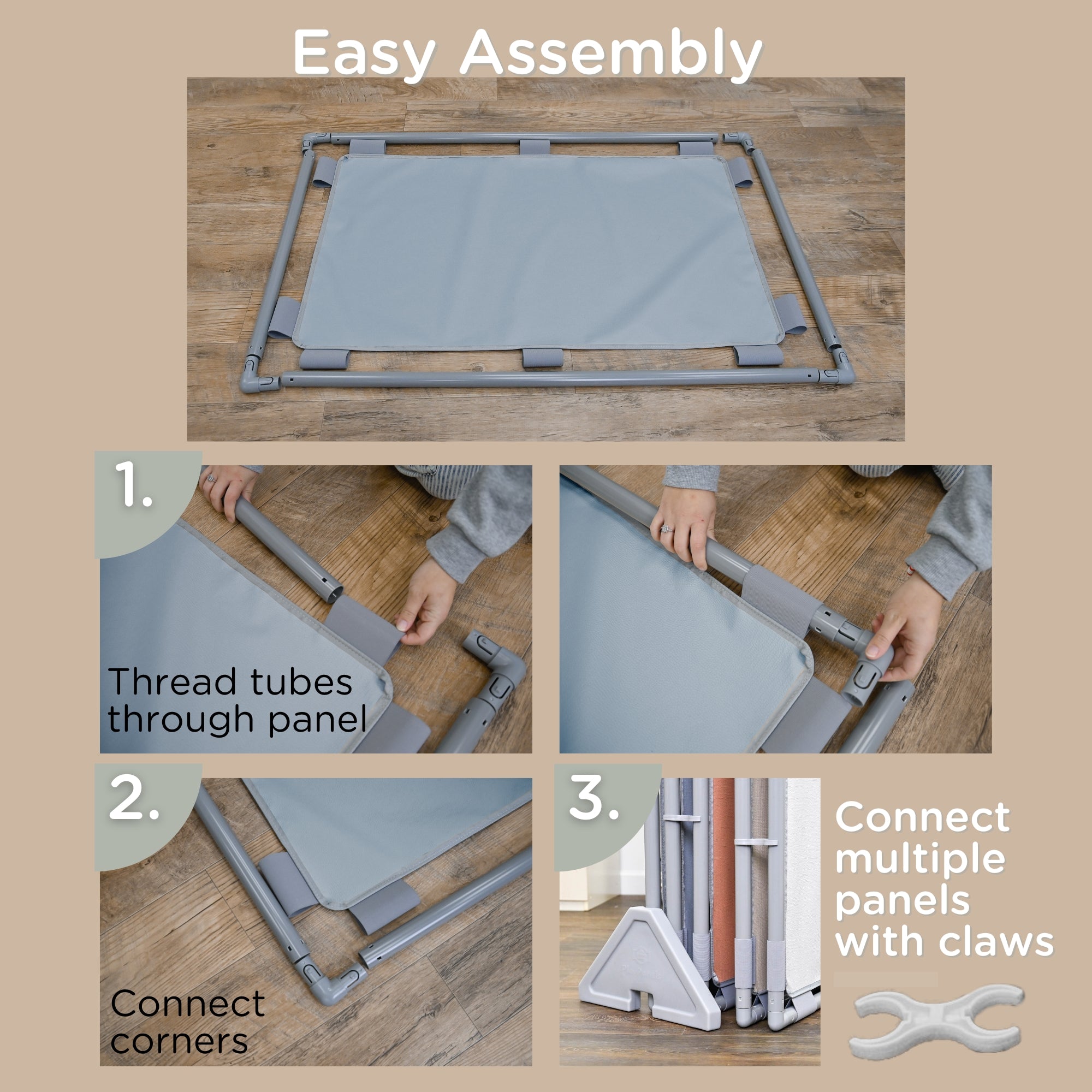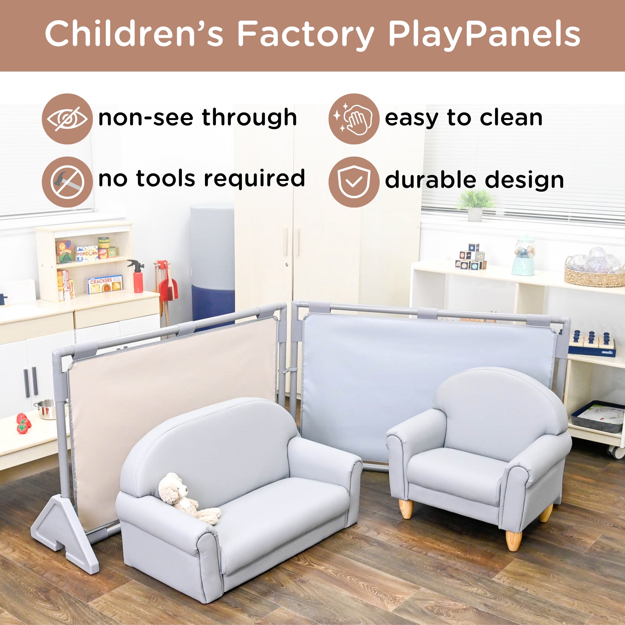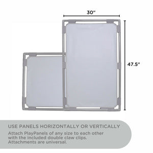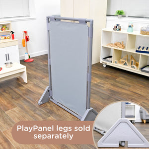 Customize your kids' learning space with the PlayPanel Room Dividers. Room dividing panels serve a variety of purposes such as separating activities or creating different work stations in your classroom. Using dividers encourages children to focus on the lesson or activity at hand without distractions. Each panel easily attaches to another with double claw clips. One set of double claw clips included. The easy to clean vinyl surface is stretched over durable, plastic, pipe frame. Be sure to order one pair of PlayPanel legs (sold separately, product# 60587 ) for every 3 panels.