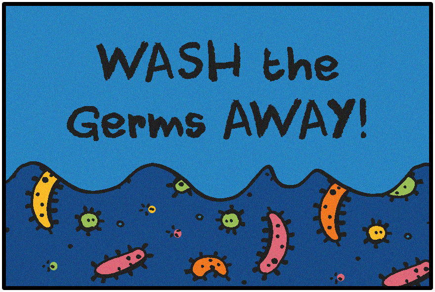 Kids love to learn through activity and play. Healthy habits are learned with visual references to waiting your turn, stop and sanitize, and wash hands. Positive, bright, and easy to understand directions for learning and teaching healthy habits in a carpet. Includes sturdy non-latex rubberized backing for slip resistance. Water protection barrier built in protects flooring for sink activities. Easy to clean and care for with hot water extraction only, no chemicals needed. Machine washable.