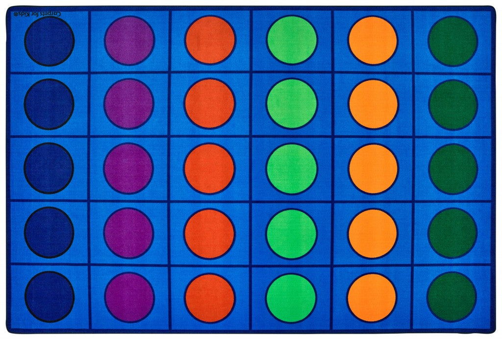 Rows of primary-colored circles create a fun place for kids of all ages to sit and learn. Seating for up to 30 spaces for the ultimate in classroom organization room for kids in all grades.