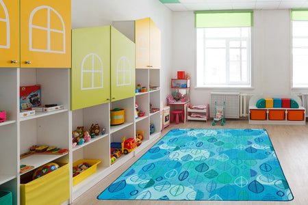 #59200 Peaceful Spaces Leaf Rug Blue, 6ft x 9ft Rectangle