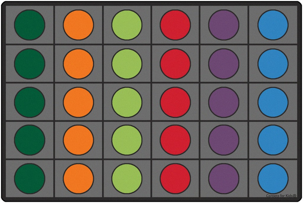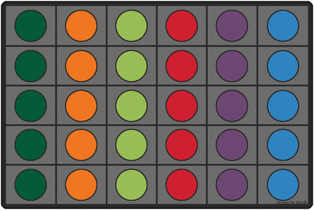 Everybody has a spot on this updated classic with a fresh new color. Brighten up your office, classroom, kid's room or playroom with this spotted carpet. Each space is large enough for child seat. Easy to play games, organize seating in the classroom, or use as decorative accent.