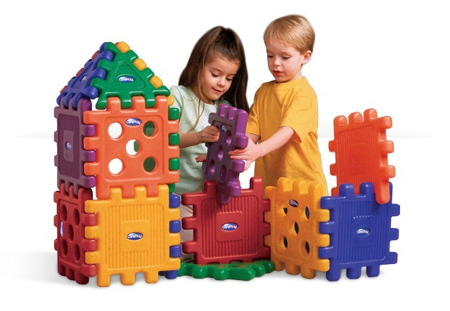 Child-sized blocks encourage imaginative play and gross motor skill development