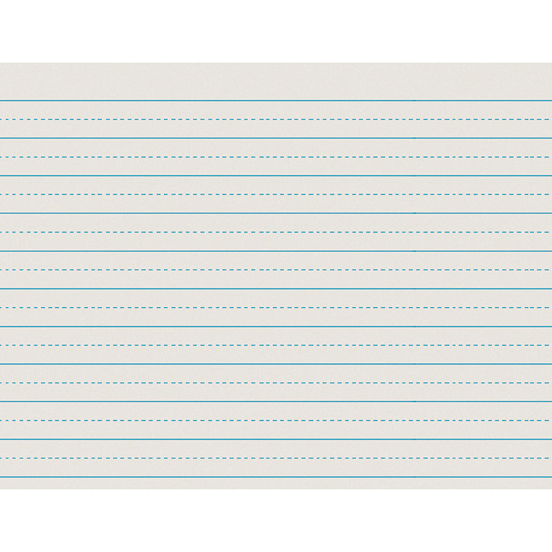 Ruled practice paper. Clean white newsprint has light blue ruling on both sides. Dotted midline serves as a guide for controlled writing. 11" x 8-1/2" sheets ruled the long way. 500 sheets per ream. Recyclable.