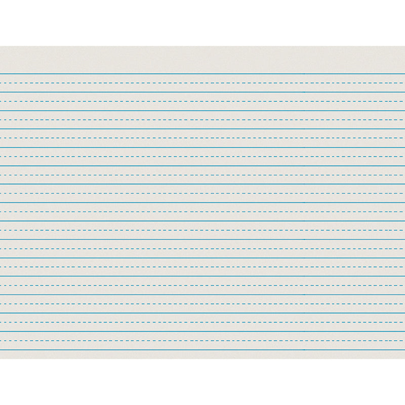 Ruled practice paper. Clean white newsprint has light blue ruling on both sides. Dotted midline serves as a guide for controlled writing. 11" x 8-1/2" sheets ruled the long way. 500 sheets per ream. Recyclable.
